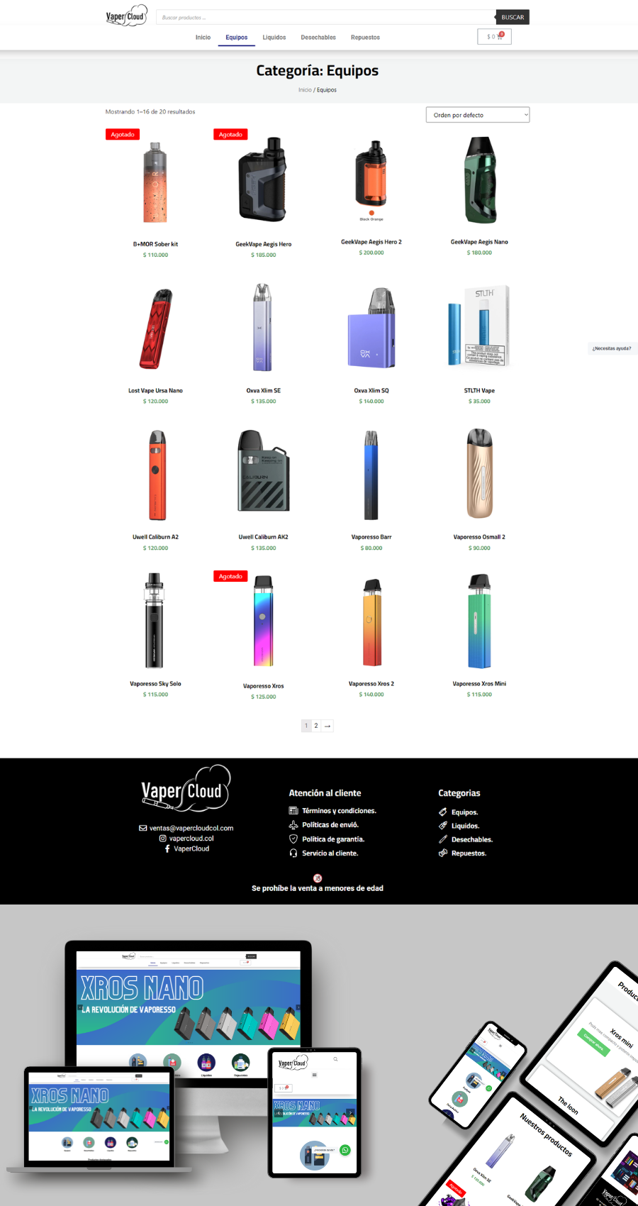 Diseño de tienda online a medida con diversos productos y descripciones para la facilidad de los clientes en lo visual.